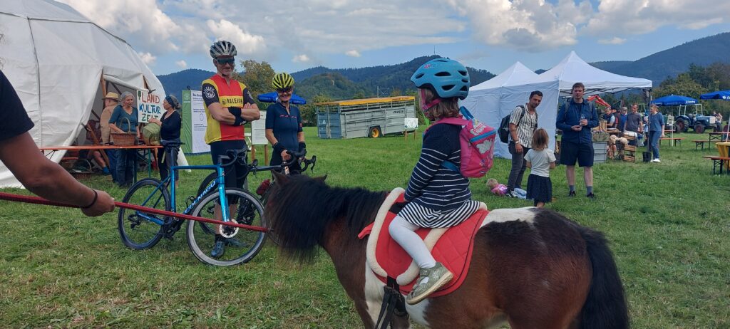 Das traditionelle Höfe-Festival im.September 2024 auf der Rainhofwiese. Das denkmalgeschützte Ensemble der Rainhofscheune (links) und des Rainhofs (Mitte) sind als historisches Ortseingangsbild zusammen mit der Rainhofwiese gut zu erkennen. Eine neue Wohnblockbebauung würde das Ortsbild zerstören. Bildquelle: https://www.marktplatz-landkultur.de/hoefe-festival/r%C3%BCckblick-hoefe-festival-24/Auch Ponyreiten für Kinder ist auf dem Höfe-Festival eine große Attraktion