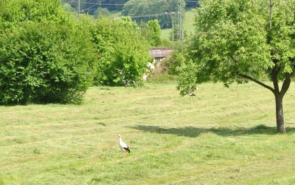 Die Streuobstwiese bietet Vögeln und Insekten Nahrungs- und NistplätzeAuch Störche nutzen die Rainhofwiese zur Futtersuche