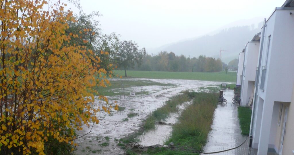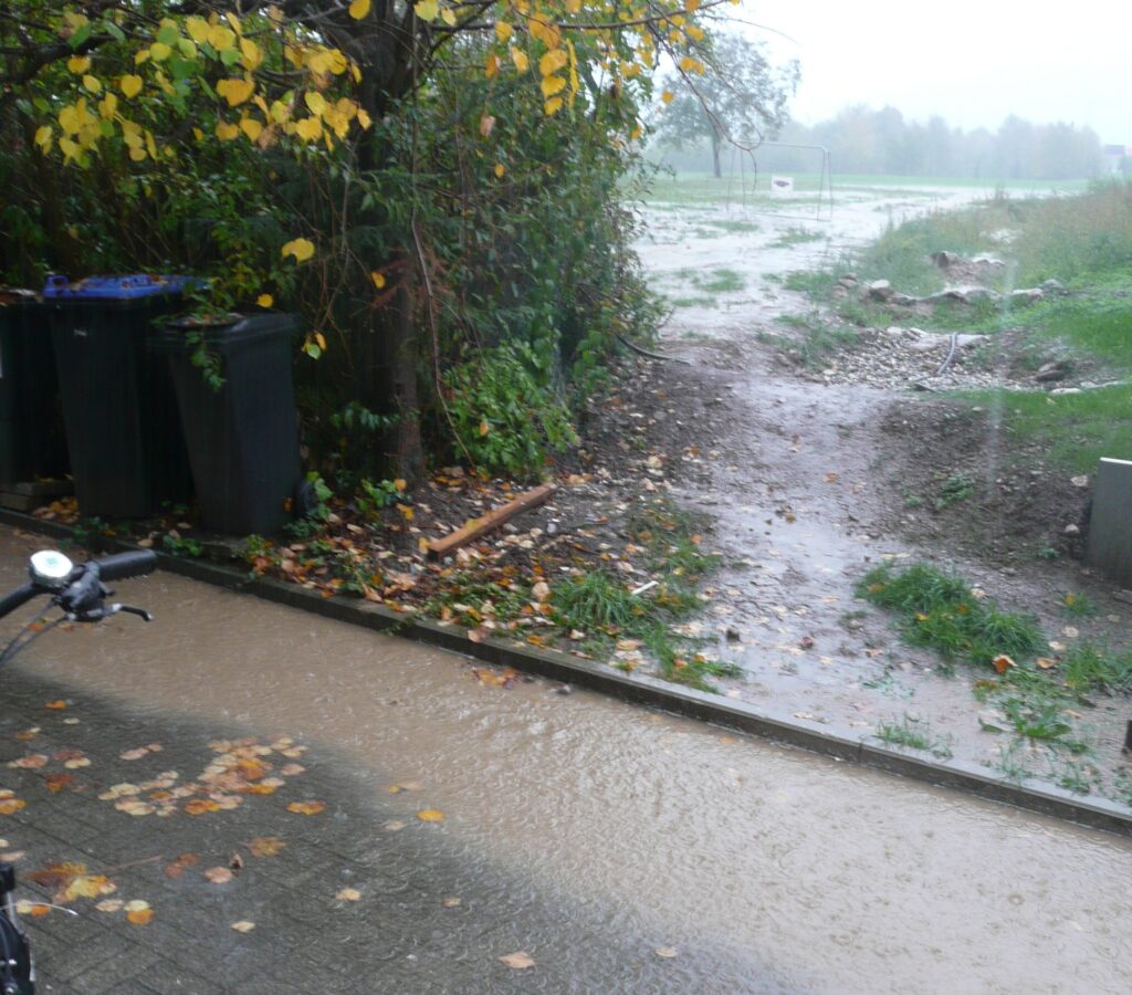 Bei weiterer Versiegelung kann der stauwassergefährdete Boden das Wasser nicht mehr aufnehmen und es droht ein noch stärkerer Wassereinbruch in den Kellern der umliegenden Häuser als jetzt schon der Fall ist.